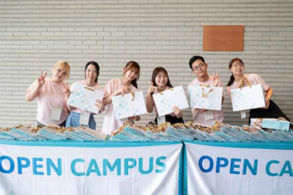 オープンキャンパススタッフが笑顔でお出迎え! -