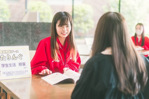 学生個別相談コーナーかたりんぐでは、授業、キャンパスライフ、クラブ・サークル、アルバイト……。在学生がマンツーマンでお話します!なんでも気軽に質問してみよう!