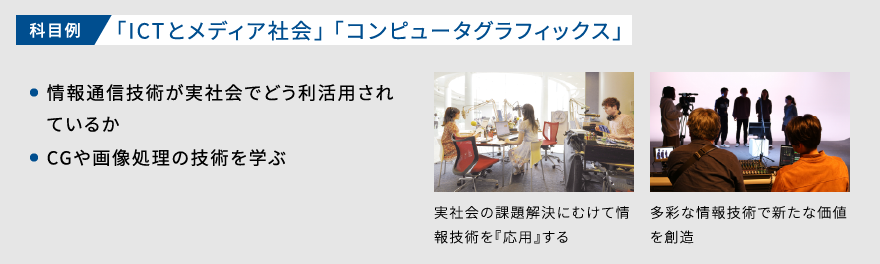 情報技術を学び、それを社会に応用して新たな価値を創造するなど、「情報と実社会をつなげる」ことについて探究します。