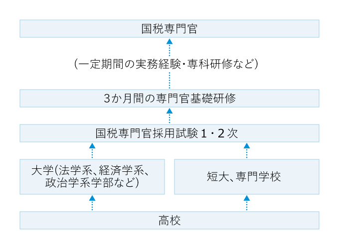 試験合格後、各国税局への採用が決まると、3か月間の専門官基礎研修を受け、その後各地の税務署で一定期間の実務経験を積むことになる。そしてさらに専科研修などを経て、国税専門官に任命される。
