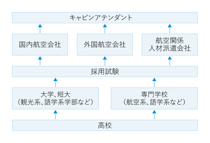 キャビンアテンダントになるには、日本の航空会社や日本に乗り入れている外国の航空会社の採用試験に合格しなければならない。