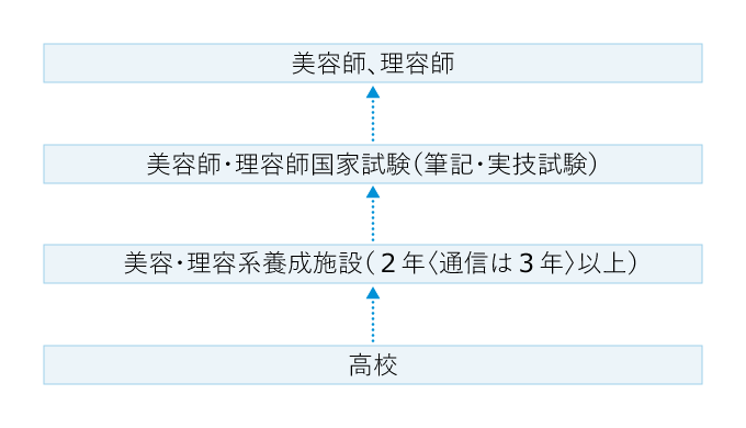 美容師、理容師として働くには、それぞれの国家試験の合格者に与えられる「理容師」「美容師」資格を取得する必要がある。国家試験の受験資格は、理容師・美容師養成施設を卒業することで得られる。