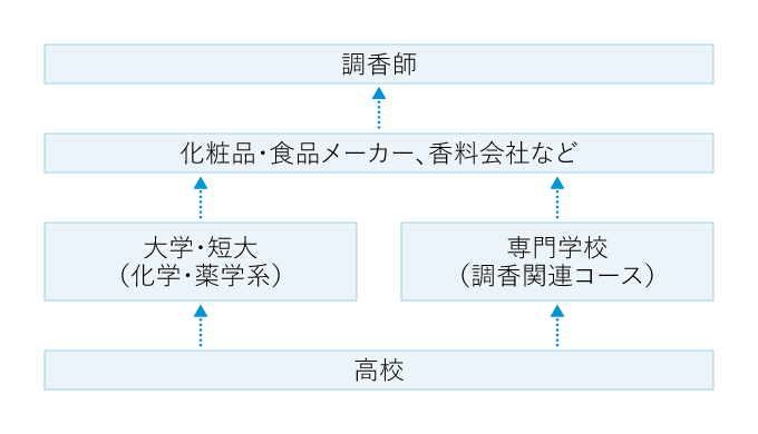 特別な資格は必要ないが、民間資格として2010年に開始された日本調香技術師検定がある。また、香りの素材に関する化学的知識が必要なので、企業では大学の理系学部卒業者を多く採用している。しかし、調香は芸術的センスが不可欠なため、趣味や課外活動などで、芸術にも多く触れておく必要がある。数は少ないが、調香関連コースをもつ専門学校やスクールもある。ここで調香の知識・技術を学ぶのも一つの方法だ。