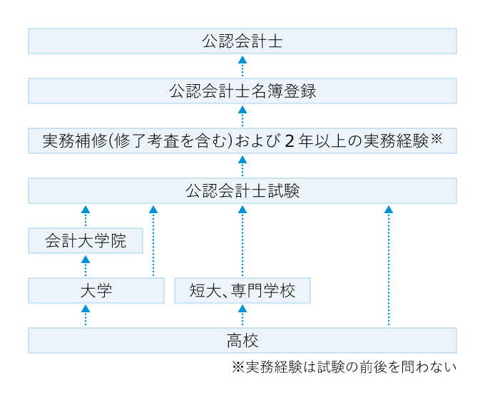 公認会計士として働くには、公認会計士の国家試験に合格し、実務補習を受けること、3年以上の実務経験を得ることが必要。実務経験を得る期間は、試験合格の前後どちらでもいい。