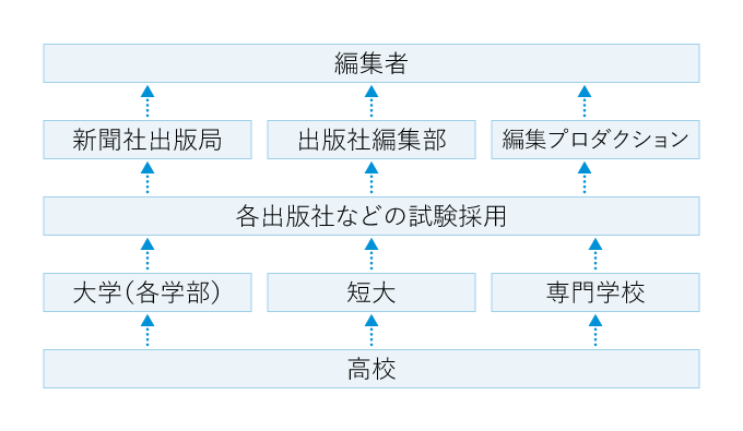 また、一部の専門出版社や編集プロダクションでは、短大や専門学校出身者に門戸を開いているところもある。