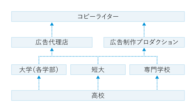 最初からコピーライターとして仕事をしたいのなら、中小の広告代理店や広告制作プロダクションに就職する方が近道だろう。