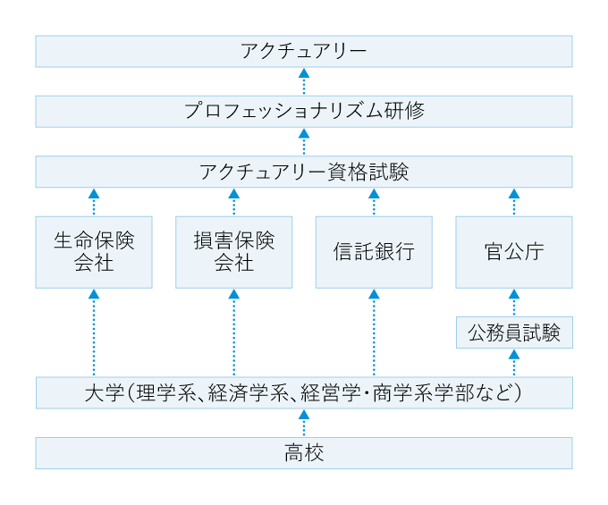 アクチュアリーになるには、(公社)日本アクチュアリー会が実施しているアクチュアリー資格試験に合格しなければならない。