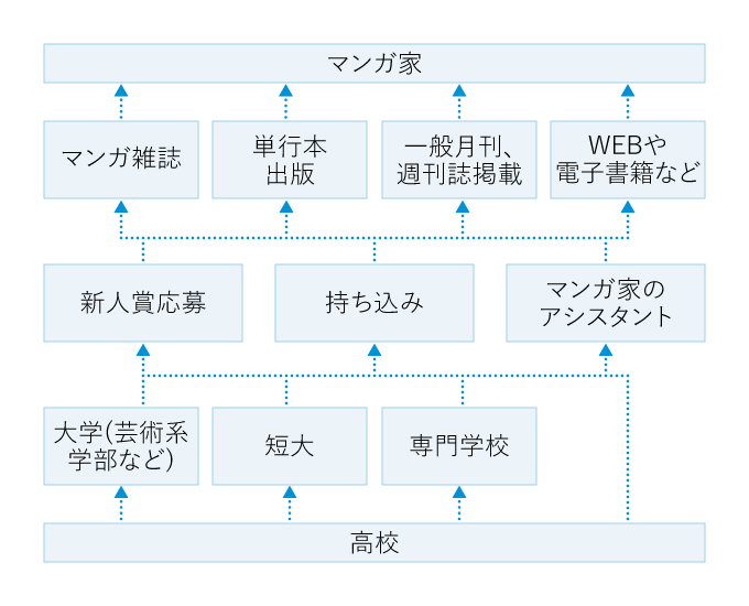 また、マンガ家養成の専門学校からプロをめざす人もいる。