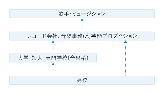 大学や専門学校は、それまで自己流でやってきた音楽を広い目で見ることを教えてくれるが、あくまでも実力本位の世界なので、そういった学校への進学=プロへの近道となるわけではない。