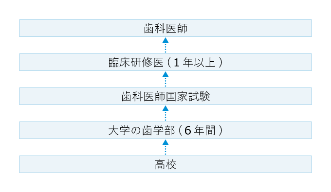 歯科医師になるには、大学の歯学部に進学して6年間の教育を受け、歯科医師国家試験に合格しなければならない。さらに、国家試験合格後は1年以上の臨床研修が必修となっている。