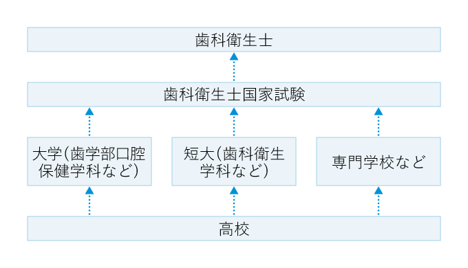 受験資格は、大学の歯学部口腔保健学科、短大の歯科衛生学科、専門学校などの養成施設を卒業すると得ることができる。