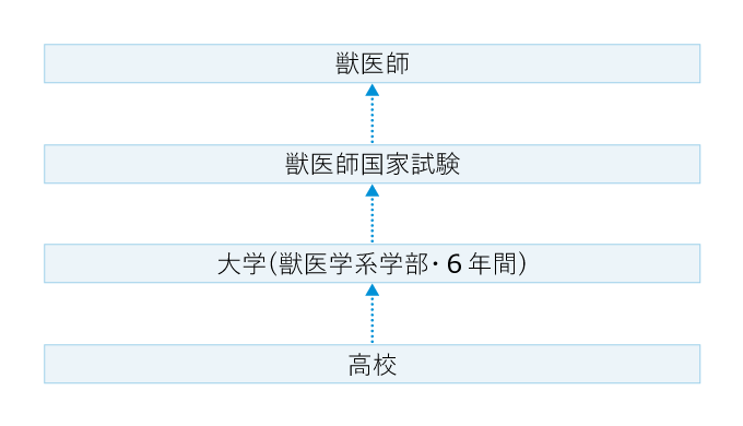 獣医師になるには、獣医学課程のある大学で6年間学んでから、獣医師国家試験に合格し、農林水産大臣から獣医師の免許を受けなければならない。
