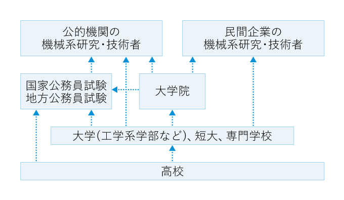 なお、機械分野の研究・技術系公務員になるためには、多くの場合、公務員試験の機械などの工学系区分に合格しなければならない。