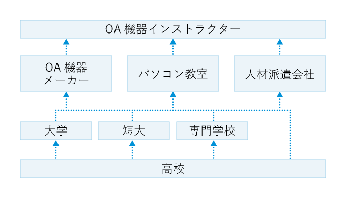 専門学校の中には、OA機器インストラクターを専門に養成するコースが設けられているところもある。