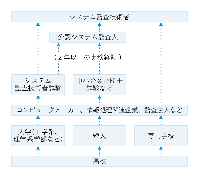 必須ではないが、経済産業省認定のシステム監査技術者試験に合格するか、情報システムコントロール協会による公認情報システム監査人の資格取得や、日本システム監査人協会による公認システム監査人の認定を受けておくと、信頼が増すため有利と言える。