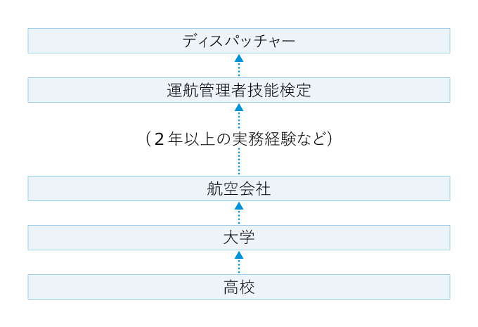 まず航空会社や運航管理関連業務を専門に行う会社に採用されることが先決だ。そして適性があると認められればオペレーションコントロールセンター(運航管理室)に配属され、2年以上の実務経験を経たのちに、運航管理者技能検定にチャレンジするのが一般的なコースである。