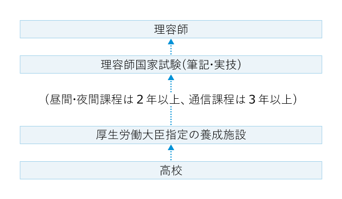 理容師になるには、理容師国家試験に合格して免許を取得しなければならない。受験資格を得るには、厚生労働大臣が指定した養成施設を卒業する必要がある。養成施設は全国に200か所以上あり、施設によっては通信教育も受けられる。