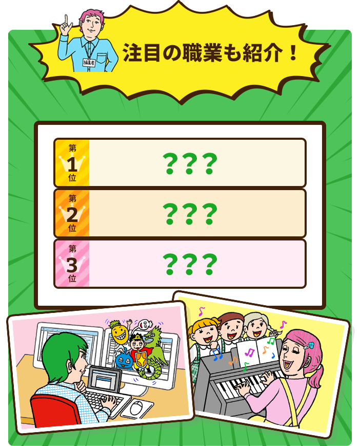キミの気になる職業は見つかったかな?ほかの職業も一緒に調べてみよう!